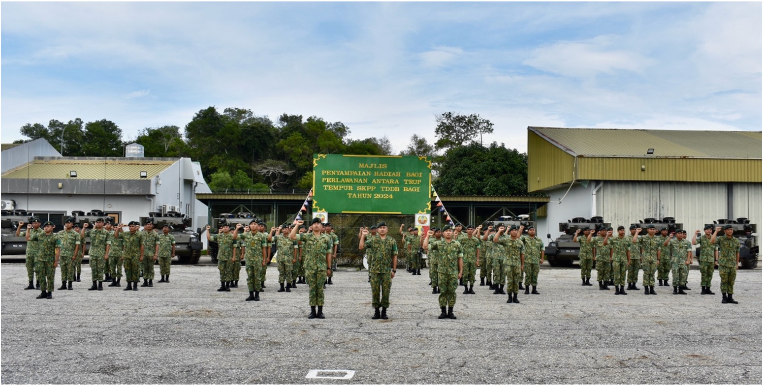 PENANJONG GARISON, Isnin, 14 Oktober 2024 – Skuadron Kereta Perisai Peninjau Tentera Darat Diraja Brunei (SKPP TDDB) telah mengadakan acara penutup bagi Perlawanan Antara Trup Tempur SKPP TDDB bertempat di Padang Kawad SKPP TDDB, Penanjong Garison. Hadir bagi merasmikan acara penutup ialah Leftenan Kolonel Mohammad Ghazali bin Haji Hussin, Pemangku Ketua Staf Markas Medan TDDB dan turut disertai oleh Mejar Awang Haji Mohammad Shahereen Firdaus bin Awang Haji Abu Bakar, Pegawai Memerintah SKPP TDDB, Pegawai-pegawai dan anggota-anggota SKPP TDDB. Sebanyak tiga trup tempur telah bertanding dalam perlawanan itu dari 1 Oktober 2024 sehingga 11 Oktober 2024.