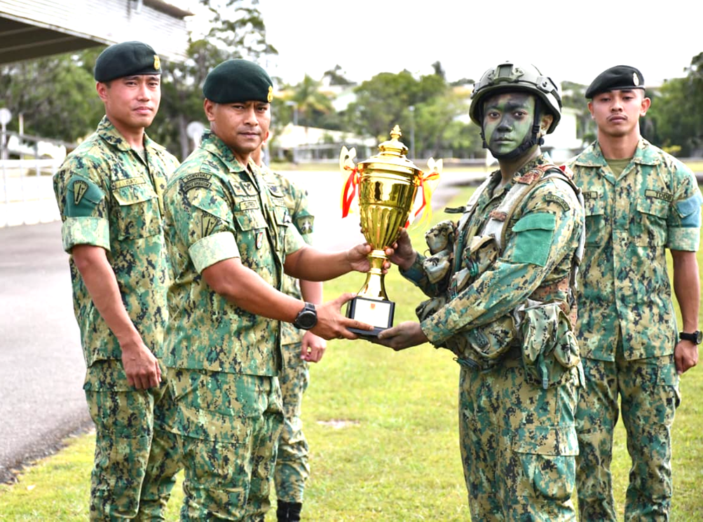 The closing began with a 2.2-kilometre 'Larian Gempur' (Assault Run) involving all platoons, followed by the recitation of Surah Al-Fatihah led by Sergeant Md Hafiy bin Md Ariffin from the Royal Brunei Armed Forces Religious Directorate. Major Amzar Mu'az bin Tamit, Officer Commanding of 'B' Company, later delivered a summary of the competition. In the first segment of awards, Major Mohammad Sufrien bin Johan, 2Bn RBLF Commanding Officer (CO), presented the Trophy for the CO's Challenge “Keringat Tempur" to Platoon 3, 'A' Company, while Platoon 1, also from 'A' Company, received the award for Best Platoon Drill.