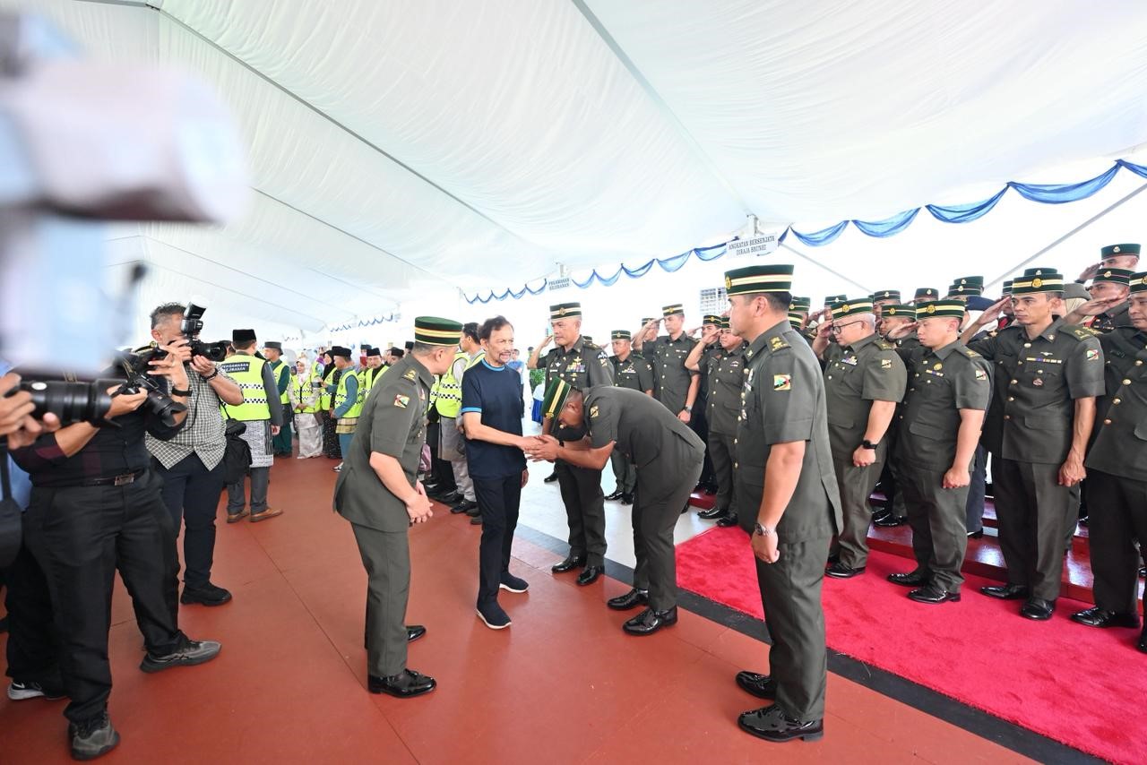 TUTONG DISTRICT, Saturday, 4th October 2025 – The Second Battalion Royal Brunei Land Forces (2Bn RBLF) joined together with the citizens and residents of Tutong District to greet His Majesty Sultan Haji Hassanal Bolkiah Mu'izzaddin Waddaulah ibni Al-Marhum Sultan Haji Omar 'Ali Saifuddien Sa'adul Khairi Waddien, Sultan and Yang Di-Pertuan of Brunei Darussalam for a Get-Together in conjunction with His Majesty's 79th Birthday celebrations held at the Padang Pentas Diraja, Tutong District.