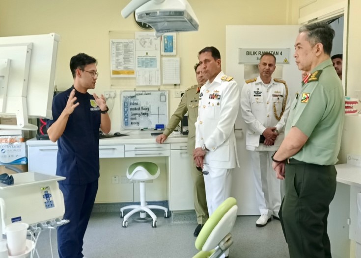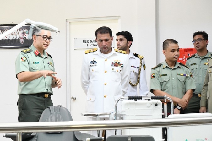 Upon arrival at the First Battalion Headquarters, RBLF, His Excellency Rear Admiral Amir Mahmood and delegation were welcomed by Lieutenant Colonel Erwan bin Haji Ibrahim, the RBLF Chief of Staff. The visit began with RBLF organisational brief, followed by a photo session and a static display showcasing the RBLF's assets and equipment. A visit to the RBLF Dental Services was also held, where the delegation was briefed on its core functions, including providing oral healthcare and dental treatment to the Royal Brunei Armed Forces' (RBAF) personnel and their family members. The visit concluded with a high-tea session and interaction with officers of the Islamic Republic of Pakistan serving in the RBLF Medical Services, at the Officers' Mess, Berakas Garrison.