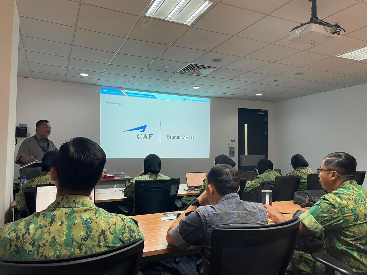 Disampaikan oleh Pengiran Haji Shaharuddin bin Pengiran Haji Metali, Jurulatih Pengurusan Kecemasan di Pusat Latihan Serbaguna CAE, sesi tersebut telah dihadiri oleh Pegawai-pegawai dari Kementerian Pertahanan, TDDB, Tentera Laut Diraja Brunei, Markas Angkatan Bersama Angkatan Bersenjata Diraja Brunei (ABDB) dan Institut Latihan ABDB. Kursus ini menjadi platform penting untuk memperkukuhkan penyelarasan dan kefahaman antara agensi, seterusnya meningkatkan kesiapsiagaan negara serta keberkesanan operasi dalam melaksanakan tindak balas bencana.