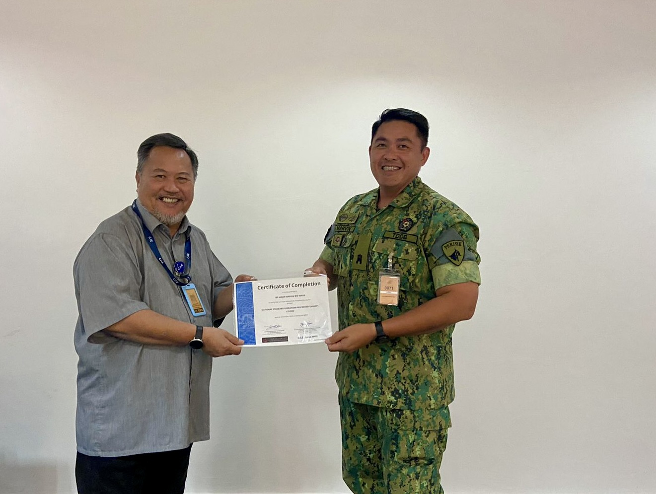 TUNGKU, Thursday, 23rd October 2025 – A total of 19 officers undergoing the All Arms Staff and Tactics Course (AASTC) organised by the Officers' Development Wing (ODW), School of Infantry, Royal Brunei Land Forces (SOI RBLF) had attended a one-day National Standard Operating Procedure (NaSOP) Course at the CAE Brunei Multi-Purpose Training Centre (MPTC). The course is aimed at equipping participants with an in-depth understanding of the national organisational framework for disaster response and management in Brunei Darussalam, based on the NaSOP guidelines. It also served as essential preparation for their upcoming operational planning phase scheduled to commence next week.