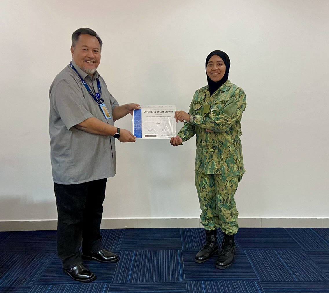 Delivered by Pengiran Haji Shaharuddin bin Pengiran Haji Metali, Emergency Management Instructor at CAE MPTC, the session was attended by officers from the Ministry of Defence, RBLF, Royal Brunei Navy (RBN), Joint Force Headquarters and Training Institute Royal Brunei Armed Forces (TI RBAF). The course provided a valuable platform to strengthen inter-agency coordination and understanding, thereby enhancing national readiness and the overall effectiveness of disaster response operations.