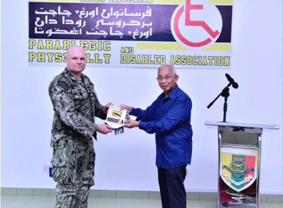 Present as the guest of honour was Yang Mulia Dato Paduka Dr Haji Abdul Latif bin Haji Ibrahim, Chairman of PAPDA. Also in attendance were Major Haji Abdul Rahim bin Haji Adris, Engr Regt Acting Commanding Officer, and Lieutenant Commander Cole Yoos, Command Chaplain, Destroyer Squadron Seven, U.S. Navy, along with personnel from the Engr Regt, the U.S. Navy, and members of PAPDA.