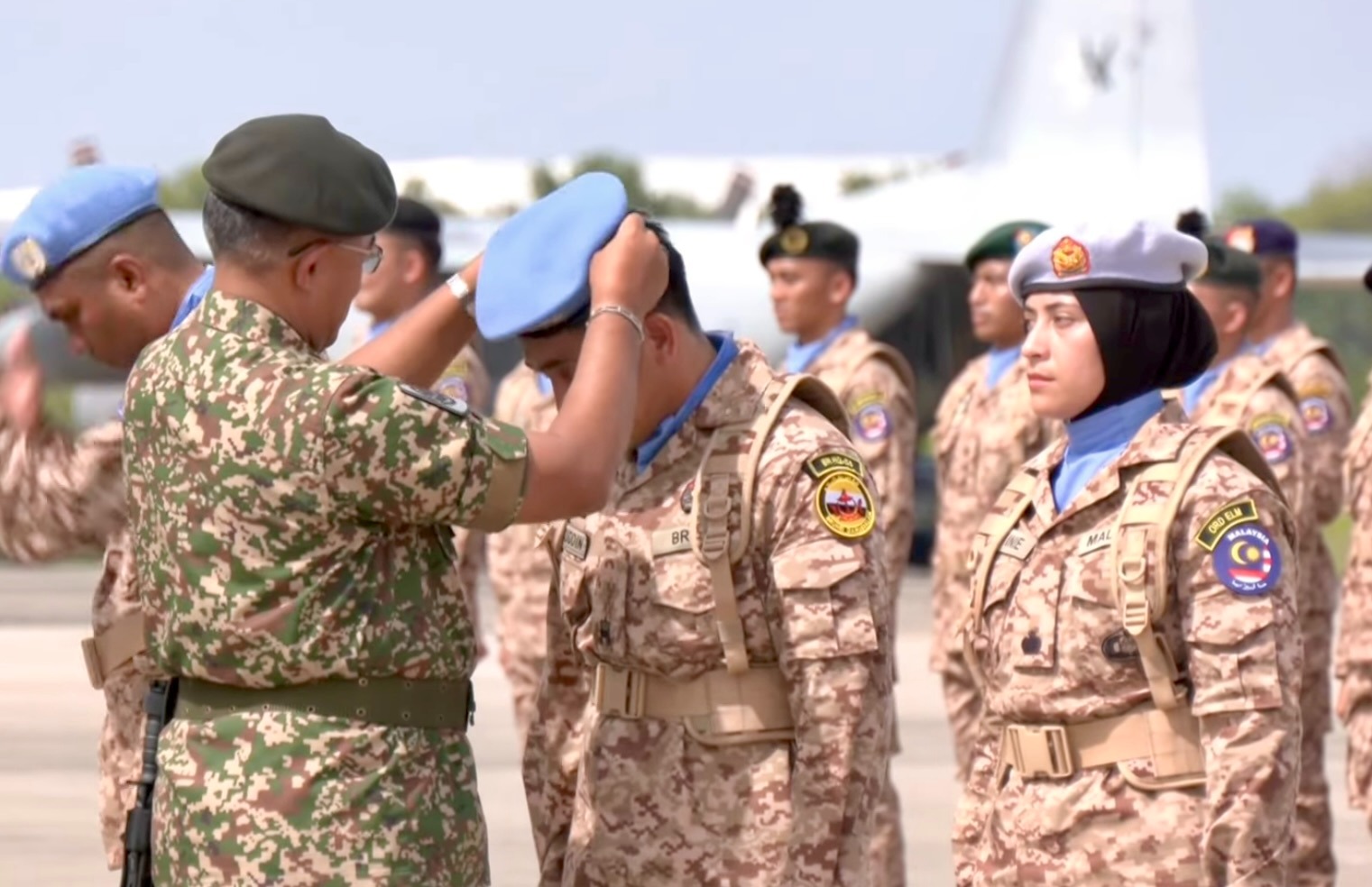 SUBANG, MALAYSIA, Wednesday, 05th November 2025 - The United Nations Blue Beret Donning Ceremony for the Malaysian Battalion (MALBATT) 850-13 contingent was officially held at Subang Air Base, Shah Alam, Malaysia, attended by Yang Berbahagia General Datuk Haji Mohd Nizam bin Haji Jaffar, Chief of Defence Force, Malaysian Armed Forces. This ceremony marks the official deployment of MALBATT 850-13 contingent and the send-off for the first MALBATT 850-13 group to Lebanon, replacing MALBATT 850-12, which will conclude their tour with the United Nations Interim Force in Lebanon (UNIFIL).