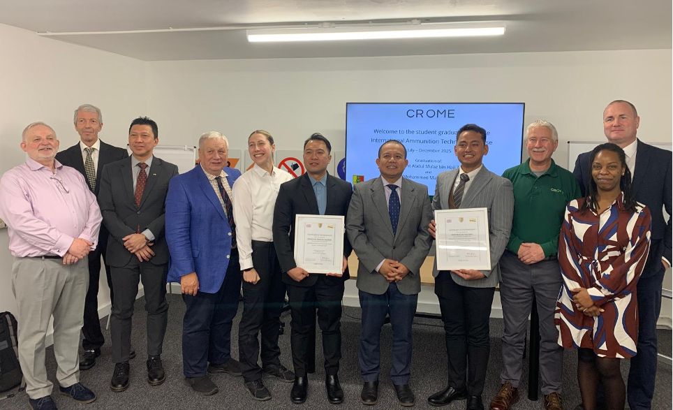 UNITED KINGDOM, Friday, 05th December 2025 – Lieutenant Abdul Mu'az bin Haji Zaidin from the Royal Guards Regiment, Royal Brunei Land Forces (RBLF), and Corporal Mohammed Mahdi bin Haji Majdi from the Ammunition Group, Logistics Depot, Combat Service Support, RBLF, had successfully completed the International Ammunition Technician Course (IATC), conducted from 05th July 2025 until 05th December 2025 in Oxfordshire, United Kingdom. The closing event was held at the Comera-Ordnance Munition Explosives (OME) Room, Heyford Park Innovation Centre, attended by Commander Ali Mustafa bin Haji Umar, RBN, Defence Adviser of Brunei Darussalam to the United Kingdom, along with Mr. Will Cogley, Managing Director of Comera Group, and instructors from Comera-OME.