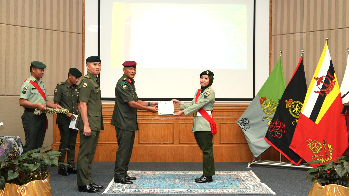 PERKHEMAHAN LUMUT, Khamis, 18 Disember 2025 – Acara Penutup Kursus Kepimpinan dan Pengurusan (KNP) Pegawai Tidak Bertauliah (PTB) Kanan Siri 1/2025 peringkat Tentera Darat Diraja Brunei (TDDB) telah diadakan di Auditorium Serunai dan Tambur, Batalion Ketiga TDDB. Acara tersebut dihadiri oleh Kolonel Mohammad Fakaruddin Zuraidie bin Haji Ramli, Pemerintah Medan TDDB. Turut hadir ialah Leftenan Kolonel Mohamad Safizan bin Ahmad, Ketua Jurulatih Institut Latihan Angkatan Bersenjata Diraja Brunei, Mejar Khairul Faizin bin Haji Abdul Gapar, Pegawai Pemerintah 3Bn TDDB selaku Pegawai Penaung Kursus, serta Pegawai-Pegawai Jemputan, Pegawai-Pegawai dan PTB Kanan daripada pelbagai unit. Kursus selama enam minggu ini telah dilaksanakan dari 10 November 2025 hingga 19 Disember 2025.