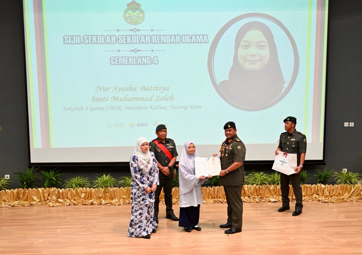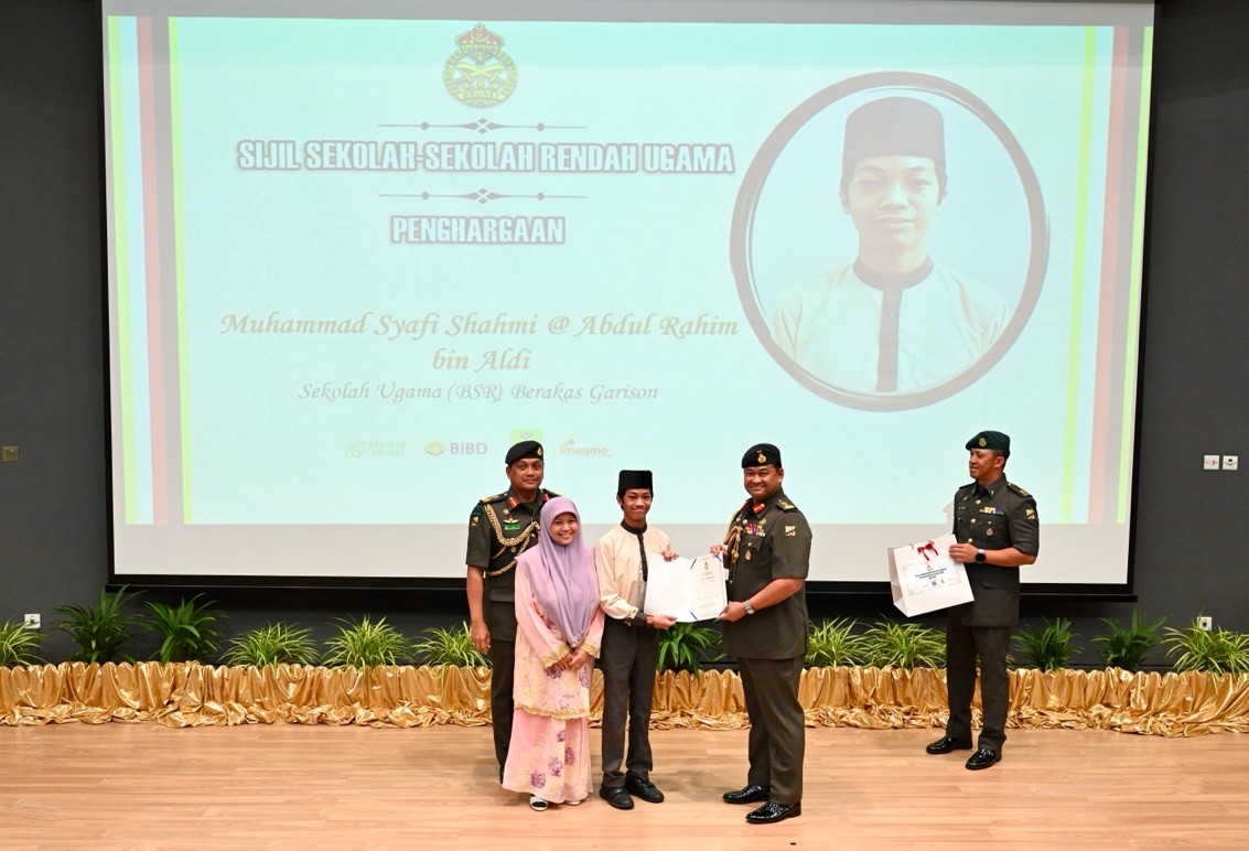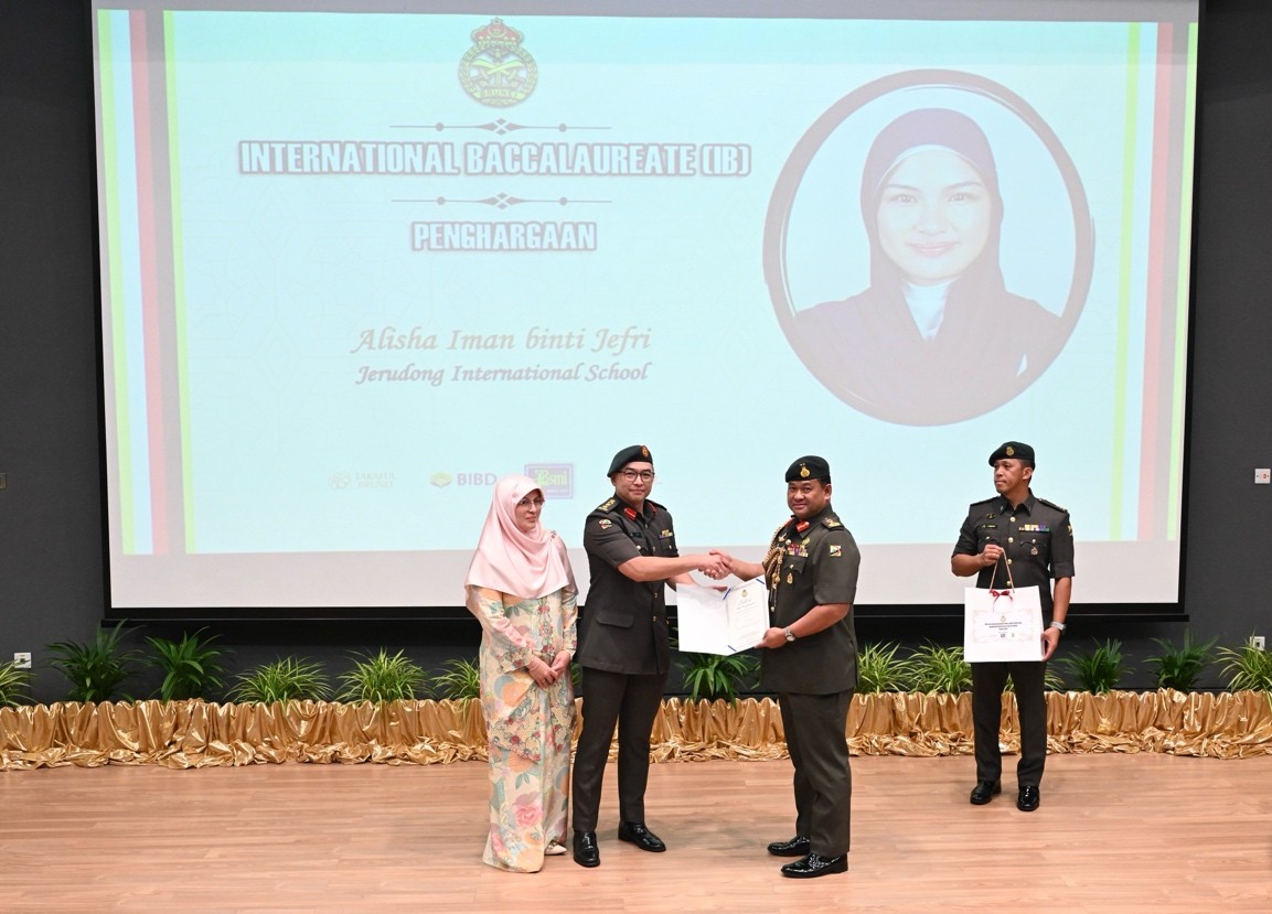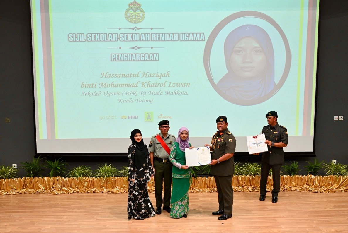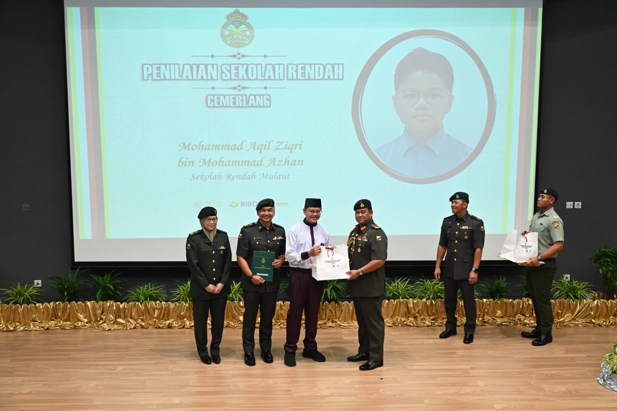 TANAH JAMBU, Friday, 09 January 2026 – The Royal Brunei Armed Forces (RBAF) held an Outstanding Awards Ceremony today at the Defence Academy Auditorium, Tanah Jambu, to honour the academic achievements of the children of its personnel for the year 2025. A total of 146 recipients, including 53 children from the Royal Brunei Land Forces (RBLF), received excellence and appreciation awards in the form of certificates and gifts for their outstanding results in the International Baccalaureate (IB), General Certificate of Education (GCE) 'A' Level, GCE 'O' Level, Sijil Pelajaran Ugama Brunei (SPUB), Sijil Pelajaran Tinggi Ugama Brunei (SPTUB), Sijil Sekolah-Sekolah Rendah Ugama (SSSRU), and Penilaian Sekolah Rendah (PSR).
