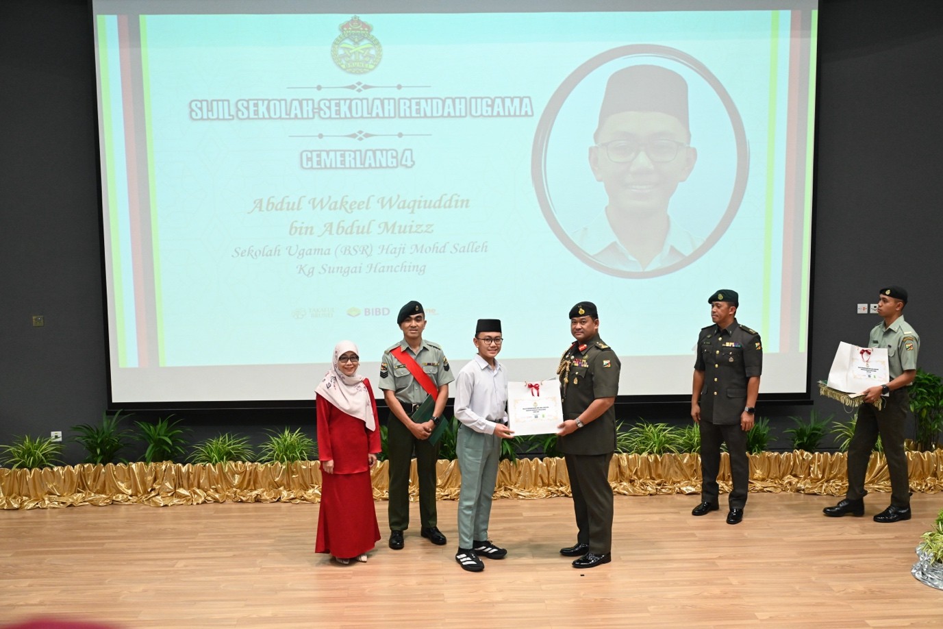 TANAH JAMBU, Jumaat, 09 Januari 2026 – Angkatan Bersenjata Diraja Brunei (ABDB) telah mengadakan Majlis Penganugerahan Anak-Anak Cemerlang hari ini bertempat di Auditorium Akademi Pertahanan, Tanah Jambu bagi menghargai pencapaian akademik anak-anak pegawai dan anggota ABDB bagi tahun 2025. Seramai 146 orang penerima, termasuk 53 anak-anak pegawai dan anggota TDDB telah menerima anugerah kecemerlangan dan penghargaan berupa sijil serta hadiah atas pencapaian cemerlang mereka dalam peperiksaan International Baccalaureate (IB), General Certificate of Education(GCE) 'A' Level, GCE 'O' Level, Sijil Pelajaran Ugama Brunei (SPUB), Sijil Pelajaran Tinggi Ugama Brunei (SPTUB), Sijil Sekolah-Sekolah Rendah Ugama (SSSRU) dan Penilaian Sekolah Rendah (PSR).