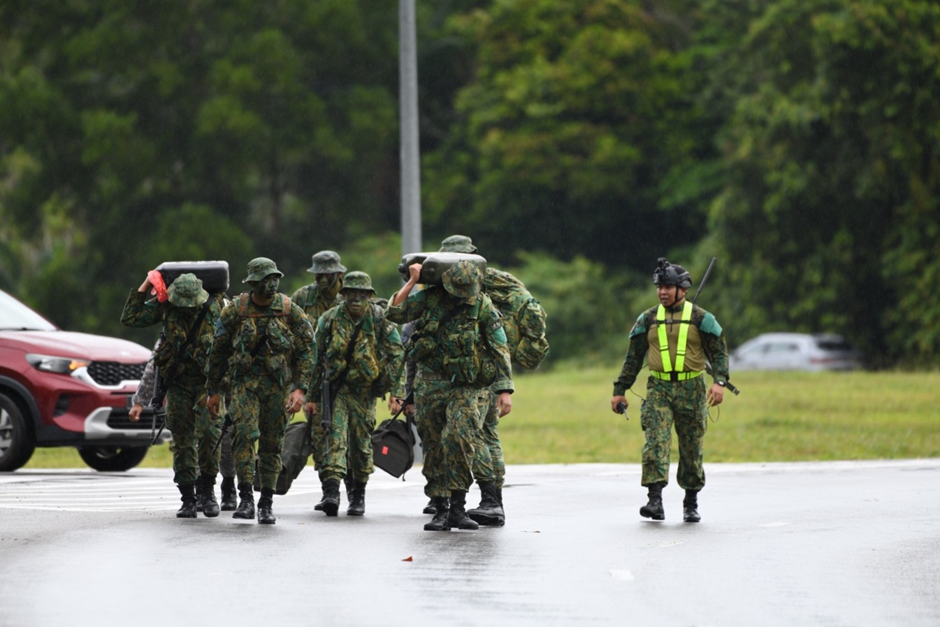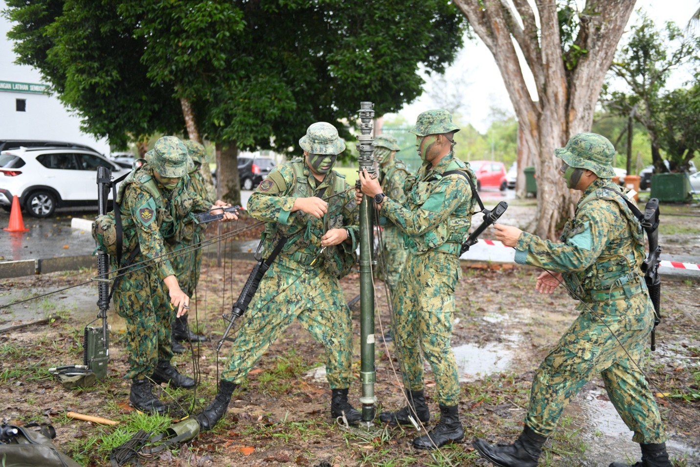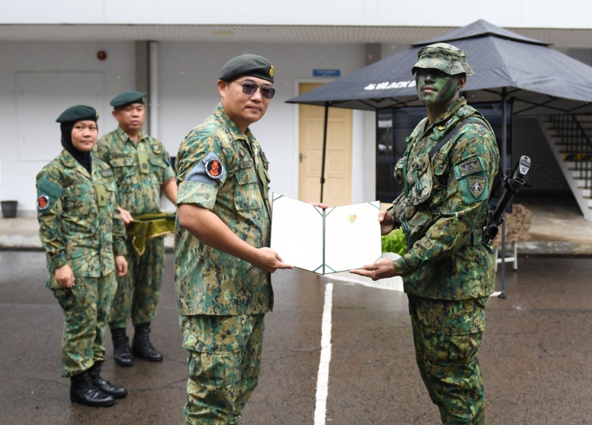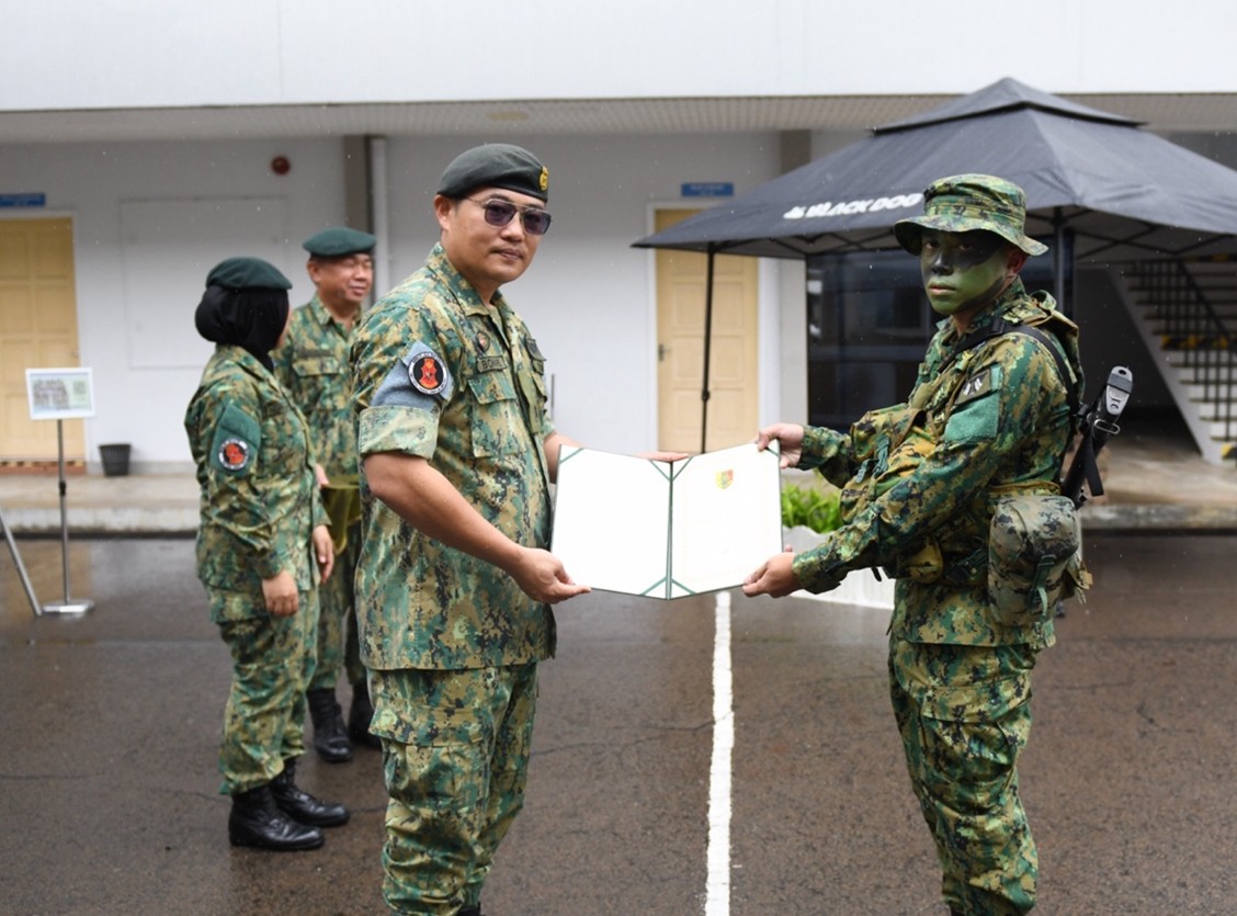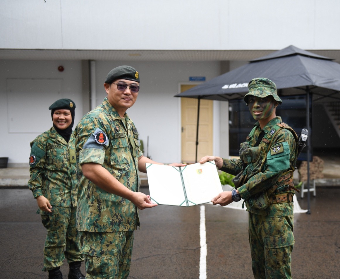 The ceremony commenced with the recitation of Surah Al-Fatihah, led by Lance Corporal Md Syafiq Naqiuddin bin Md Zaidi from the RBAF Religious Directorate. This was followed by the CO Challenge, which served as the culminating assessed activity of the Regiment Signal Instructor Course, designed to evaluate participants' physical endurance, technical signal proficiency, teamwork, and their ability to establish and maintain effective communications under simulated operational conditions. The challenge involved a forced march carrying an 8-metre telescopic mast and MA 729 antenna, a series of competitive stations, and the establishment of a functional communication link.