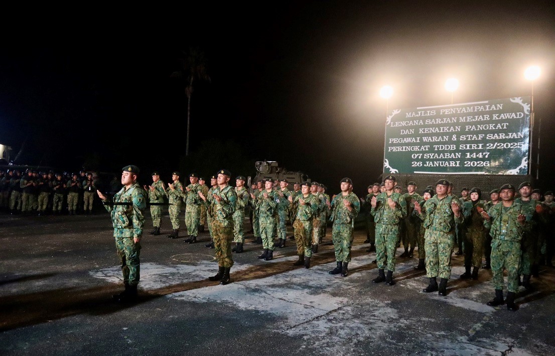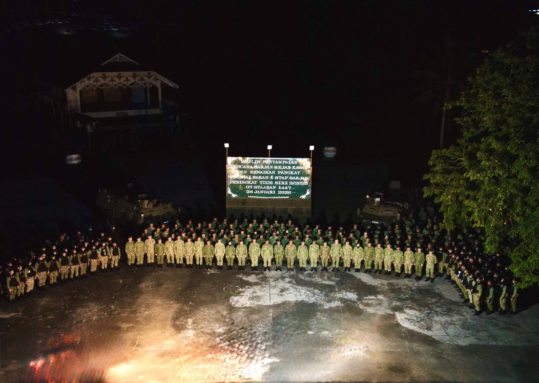 TUTONG, Isnin, 26 Januari 2026 – Tentera Darat Diraja Brunei (TDDB) telah mengadakan Majlis Penyampaian Lencana Sarjan Mejar Kawad dan Kenaikan Pangkat Pegawai Waran dan Pegawai Tidak Bertauliah Kanan (PTB Kanan) TDDB bertempat di Sungai Basong, Tutong hari ini bersempena dengan Eksesais SEMANGAT WAJA 08/2026. Seorang anggota daripada Batalion Ketiga TDDB telah menerima Lencana Sarjan Mejar Kawad, manakala seramai 18 Pegawai Waran dan 33 PTB Kanan dari pelbagi sub-unit TDDB telah dinaikkan pangkat dalam majlis tersebut. Hadir bagi menyempurnakan majlis tersebut ialah Brigedier Jeneral Aldi bin Haji Hassan, Pemerintah TDDB.