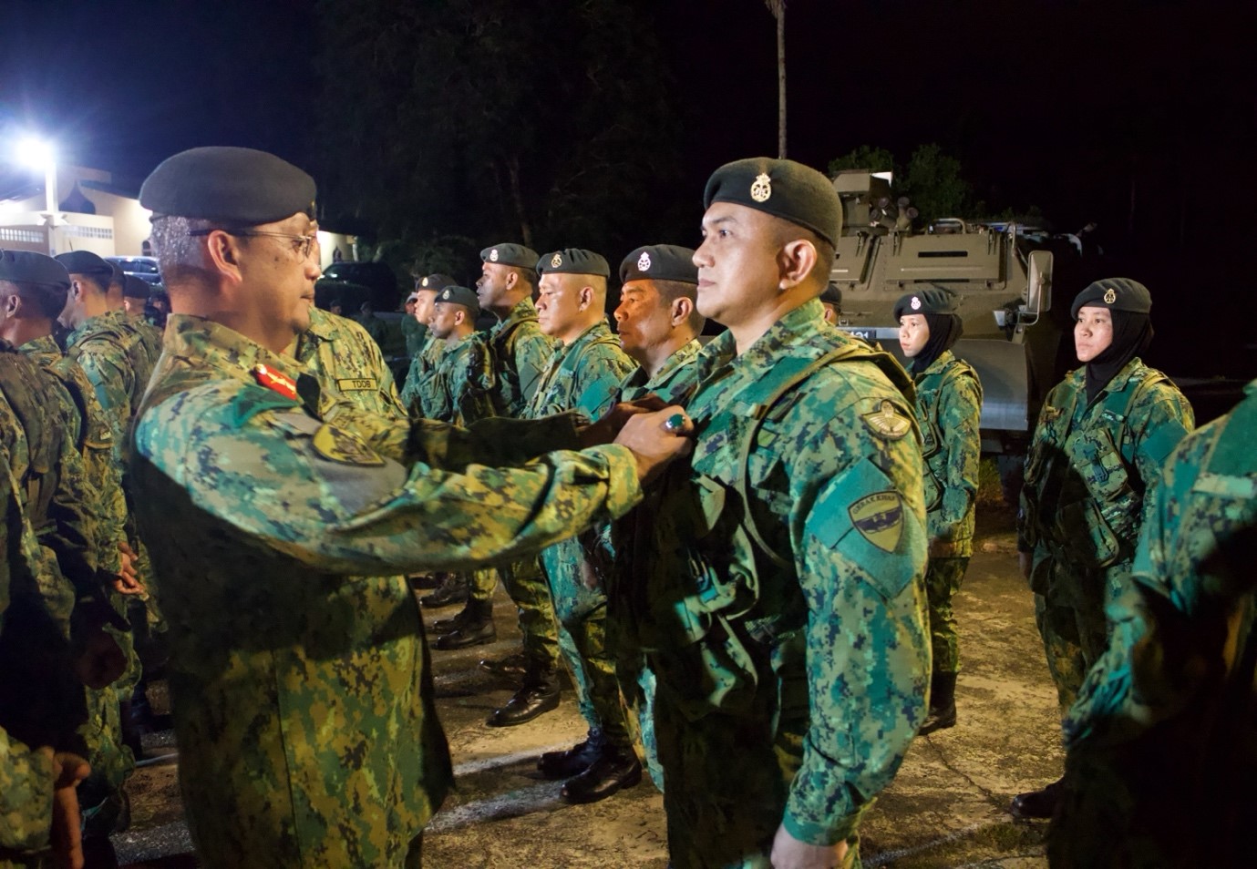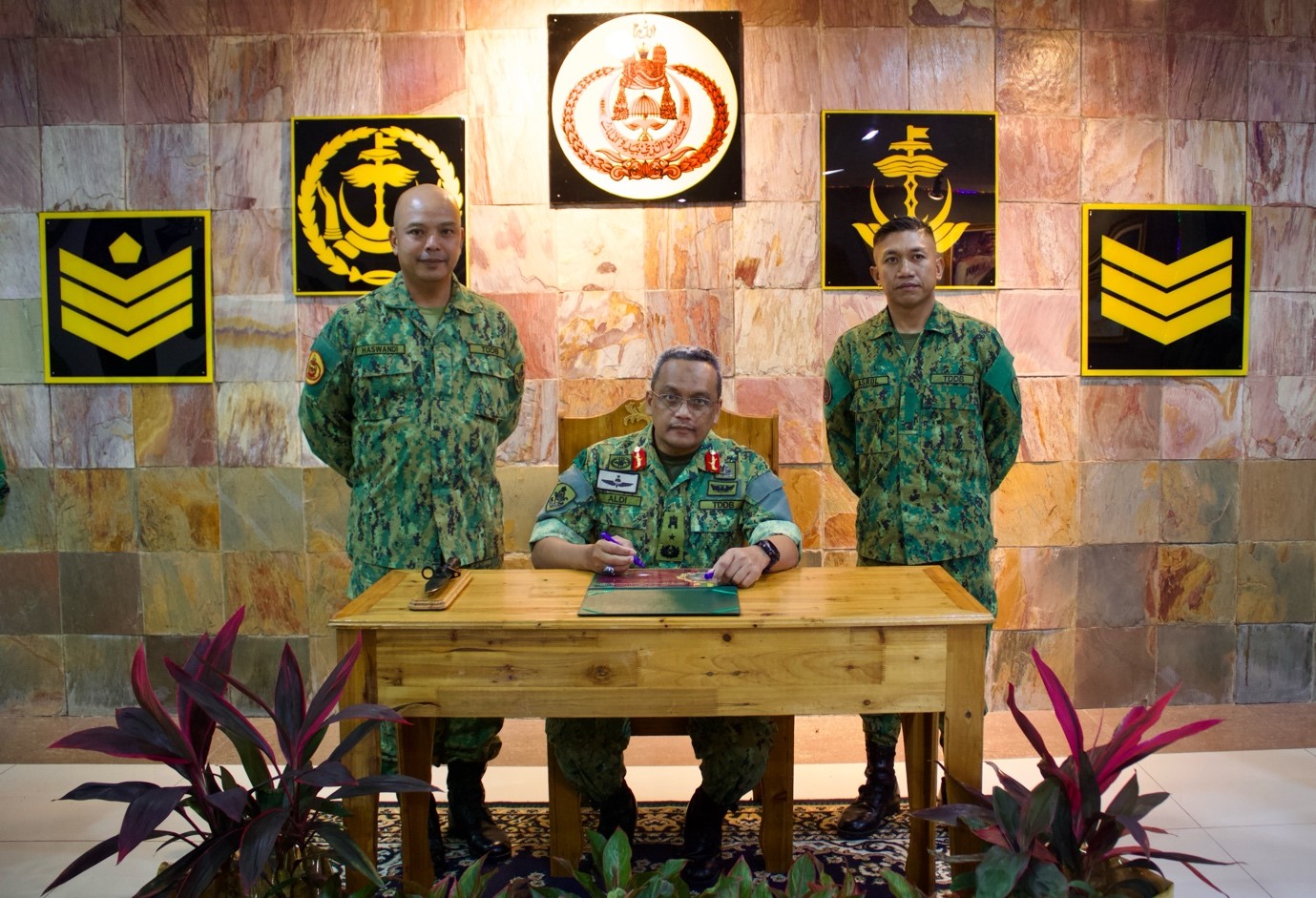 TUTONG, Monday, 26th January 2026 – The Royal Brunei Land Forces (RBLF) held the Drill Sergeant Major insignia presentation and field promotion ceremony for RBLF Warrant Officers (WOs) and Senior Non-Commissioned Officers (SNCOs) at Sungai Basong, Tutong today in conjunction with Exercise SEMANGAT WAJA 08/2026. One personnel from the Third Battalion RBLF received the Drill Sergeant Major insignia, while a total of 18 WOs and 33 SNCOs from various RBLF sub-units were promoted during the event. In attendance to officiate the event was Brigadier General Aldi bin Haji Hassan, Commander of the RBLF.