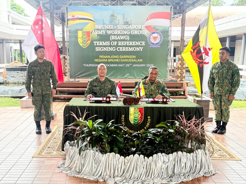 PENANJONG GARISON, Khamis, 29 Januari 2026 – Upacara Penutup Eksesais MAJU BERSAMA (XMB) 28/2025 di antara Batalion Pertama, Tentera Darat Diraja Brunei (1Bn TDDB) dan First Battalion Singapore Infantry Regiment (1SIR) telah diadakan di Kompleks Fighting in Built-Up Areas (FIBUA), Penanjong Garison. Hadir bagi menyempurnakan upacara tersebut ialah Brigedier Jeneral Aldi bin Haji Hassan, Pemerintah TDDB, dan Mejar Jeneral Cai Dexian, Panglima Tentera Darat Singapura.