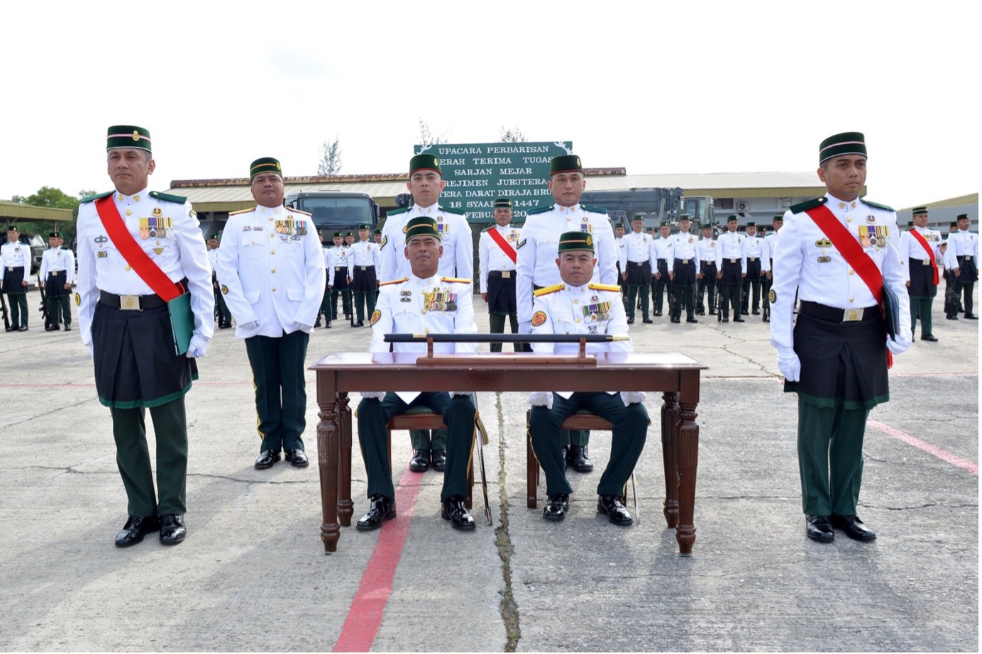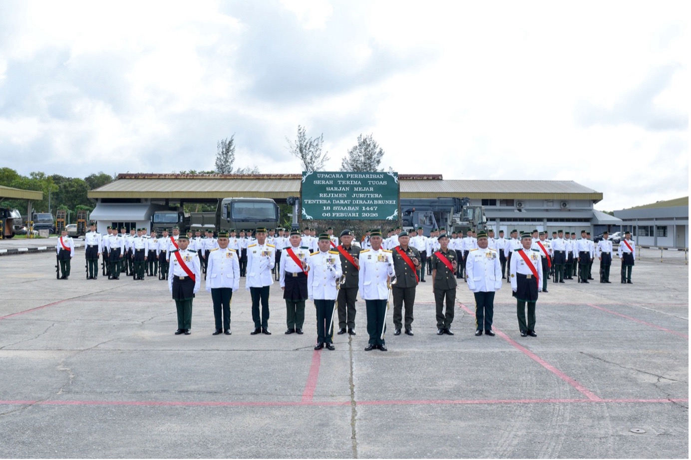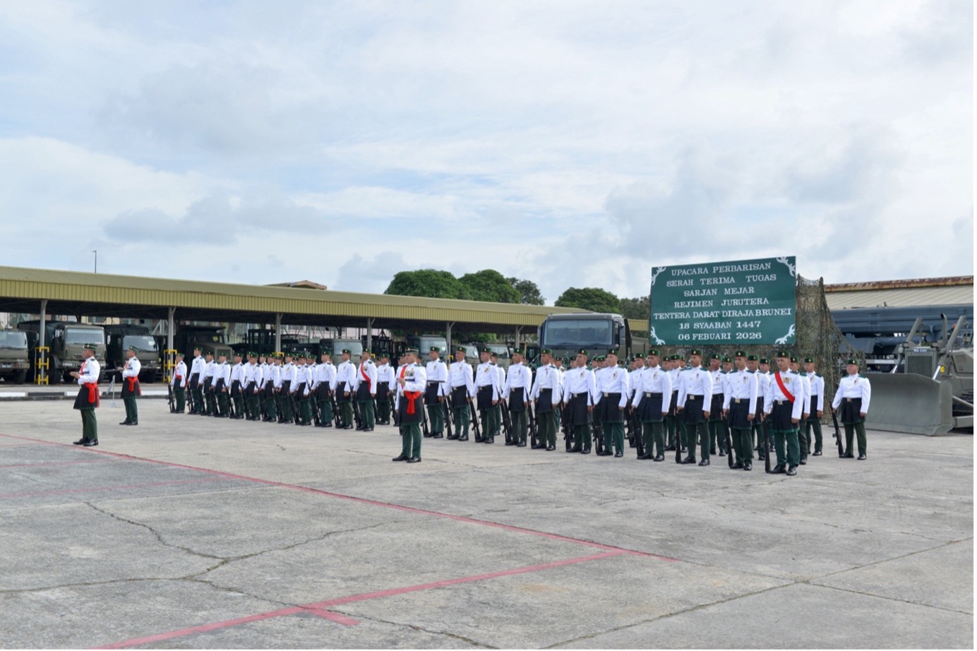 PENANJONG GARISON, Jumaat, 06 Februari 2026 – Rejimen Jurutera Tentera Darat Diraja Brunei (RJ TDDB) telah mengadakan Upacara Serah Terima Tugas bagi Sarjan Mejar Rejimen (SMR) bertempat di di Padang Kawad Skuadron Pertama, Penanjong Garison. Majlis tersebut menandakan penyerahan rasmi daripada SMR yang lama, Pegawai Waran Satu Abdul Rashid bin Haji Lamat, kepada SMR yang baru dilantik, Pegawai Waran Satu Mohd Shah Ifol bin Mohammad Salleh.