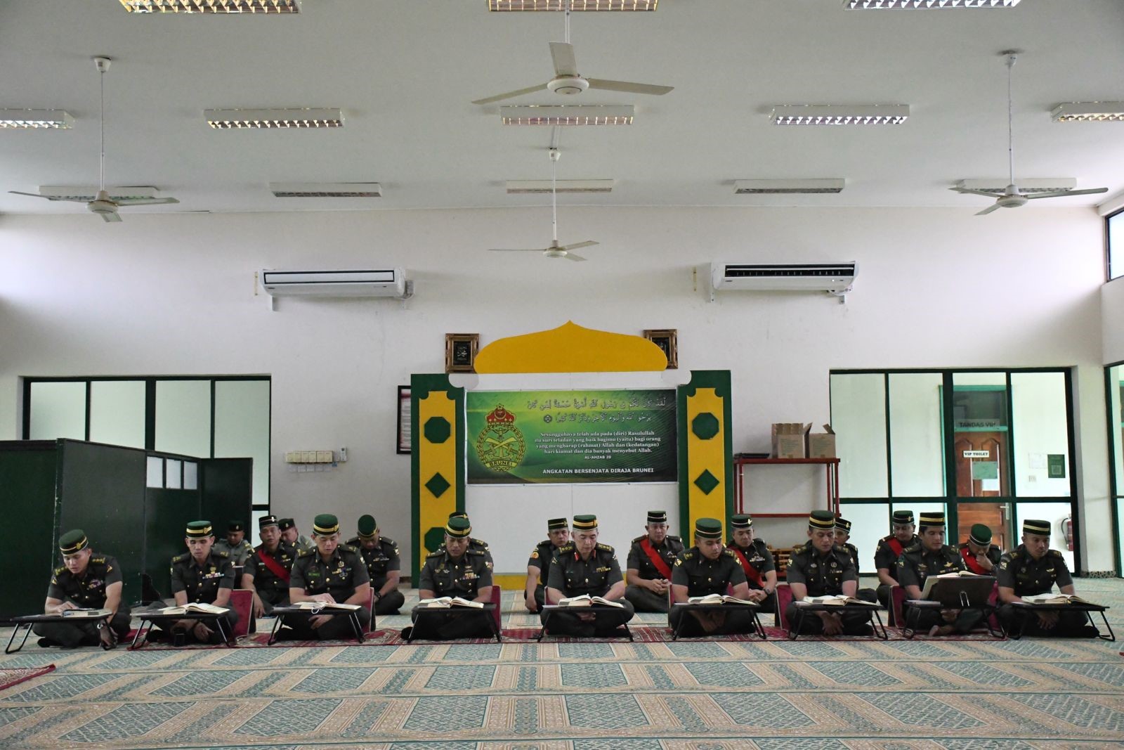 BERAKAS GARRISON, Friday, 13th February 2026 – In conjunction with the Royal Brunei Armed Forces (RBAF) 64th Anniversary, the Ministry of Defence held Khatam Al-Qur'an ceremonies simultaneously at all RBAF suraus with the focal event at Surau Al-Huda, Royl Brunei Muara Navy Base. The Royal Brunei Land Forces (RBLF) also held a similar event concurrently across all RBLF camps, including Pulau Baru-Baru Mosque. In attendance at Surau Al-Fa'izun, Berakas Garrison were Colonel Erwan bin Haji Ibrahim, RBLF Chief of Staff, Senior Officers, Officers and personnel.