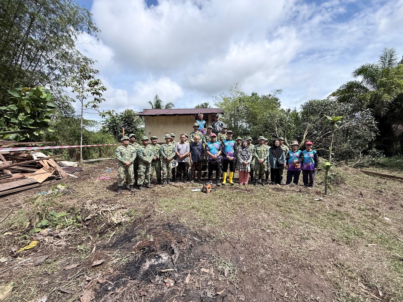 KAMPONG UKONG, Friday, 13th February 2026 – The Second Battalion Royal Brunei Land Forces (2Bn RBLF) participated in a community service initiative in support of the Mukim Consultative Council (Majlis Perundingan Mukim, MPM) Ukong Community Service Project, held at Kampong Bukit, Mukim Ukong. The initiative was led by Yang Berhormat Awang Haji Muhammad Danial @ Tek Pin bin Yaakub, Penghulu Mukim Ukong, Tutong District. Also present was the Village Head of Kampong Bukit and Long Mayan, Awang Muhd Hafizul Azmee bin Abdullah Zaman.