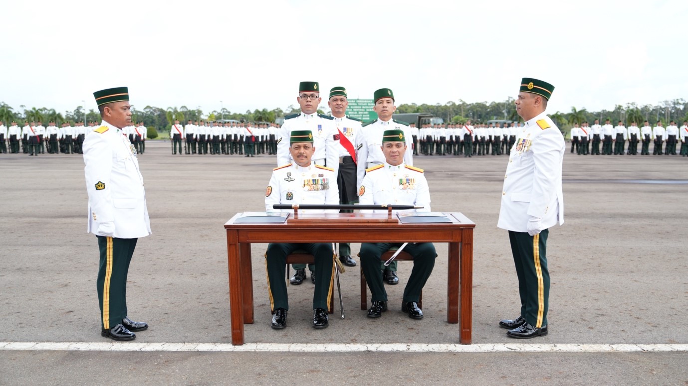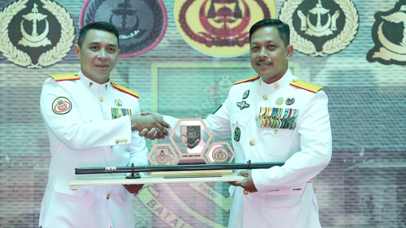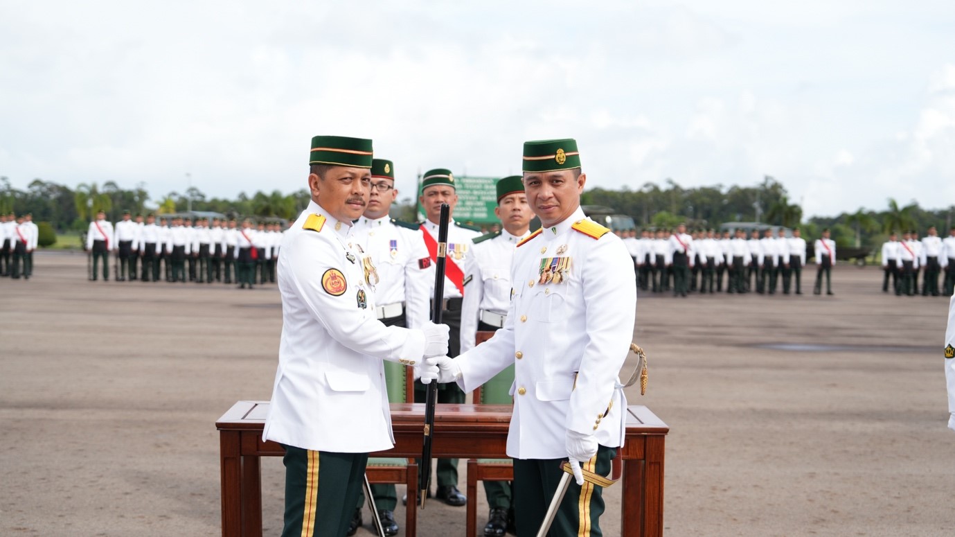 PERKHEMAHAN LUMUT, Khamis, 12 Februari 2026 – Batalion Ketiga Tentera Darat Diraja Brunei (3Bn TDDB) telah mengadakan Upacara Serah Terima Tugas bagi Sarjan Mejar Rejimen (SMR) bertempat di Padang Kawad 3Bn TDDB, Perkhemahan Lumut. Majlis tersebut menandakan penyerahan rasmi daripada SMR yang lama, Pegawai Waran Satu Haji Hashim bin Haji Awang Besar, kepada SMR yang baru dilantik, Pegawai Waran Satu Haji Azril Nizam bin Haji Md Rais.
