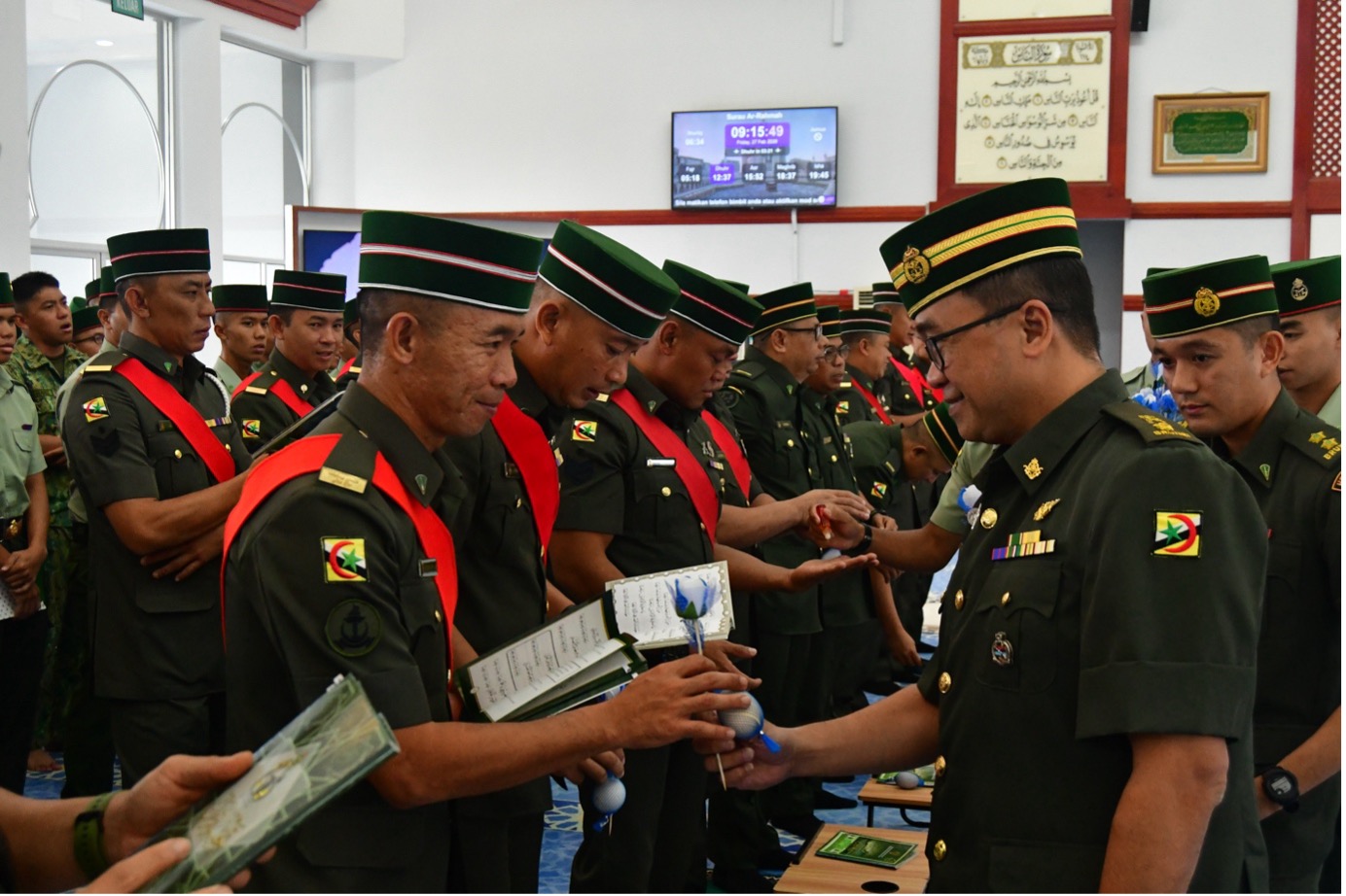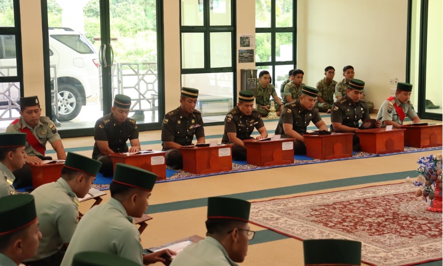 BERAKAS GARRISON, Khamis, 26th February 2026 – The Royal Brunei Land Forces (RBLF) organised its first Khatam Al-Quran ceremonies in conjunction with the holy month of Ramadhan 1447 Hijrah. The ceremonies were held simultaneously at all RBLF suraus, including Pulau Baru-Baru Mosque, with the main event at Surau Al-Fa'izun, Berakas Garrison. Present were Colonel Erwan bin Haji Ibrahim, Chief of Staff, RBLF, and senior officers, officers, and RBLF personnel.