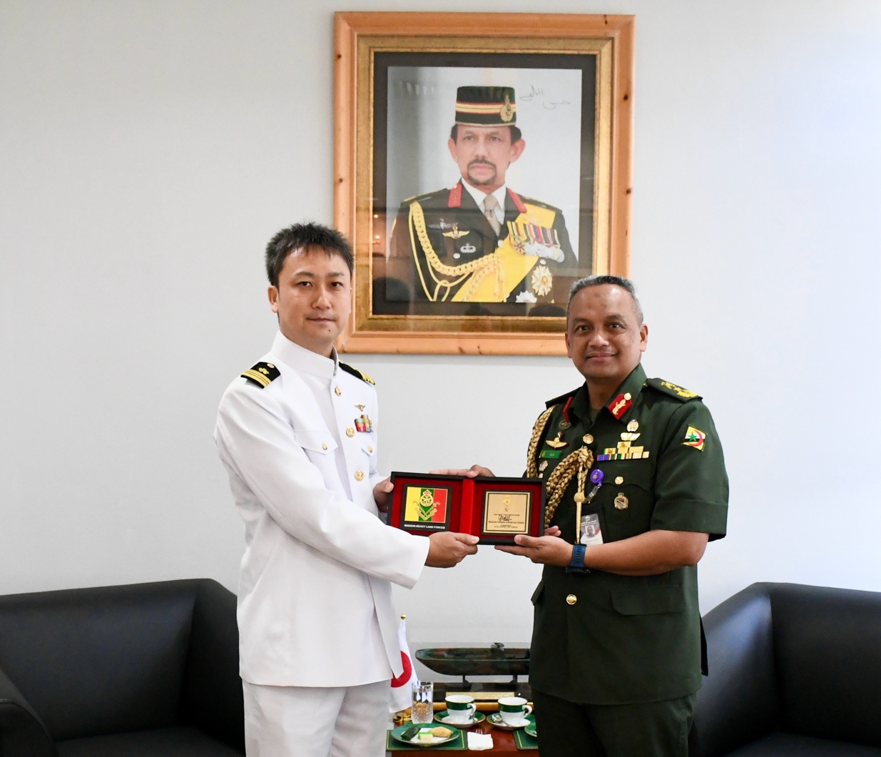 During the call, the Commander of RBLF welcomed and congratulated Lieutenant Commander Hasegawa Takeshi as the first Japanese Defence Attaché to Brunei Darussalam. Both sides then reaffirmed the longstanding and cordial defence relations between Brunei Darussalam and Japan, which continue to be strengthened through regular engagements, exchanges of visits, and professional interactions. The Commander of RBLF also conveyed his appreciation to Lieutenant Commander Wada for his dedicated service and contributions in fostering defence relations between both organisations throughout his tenure.