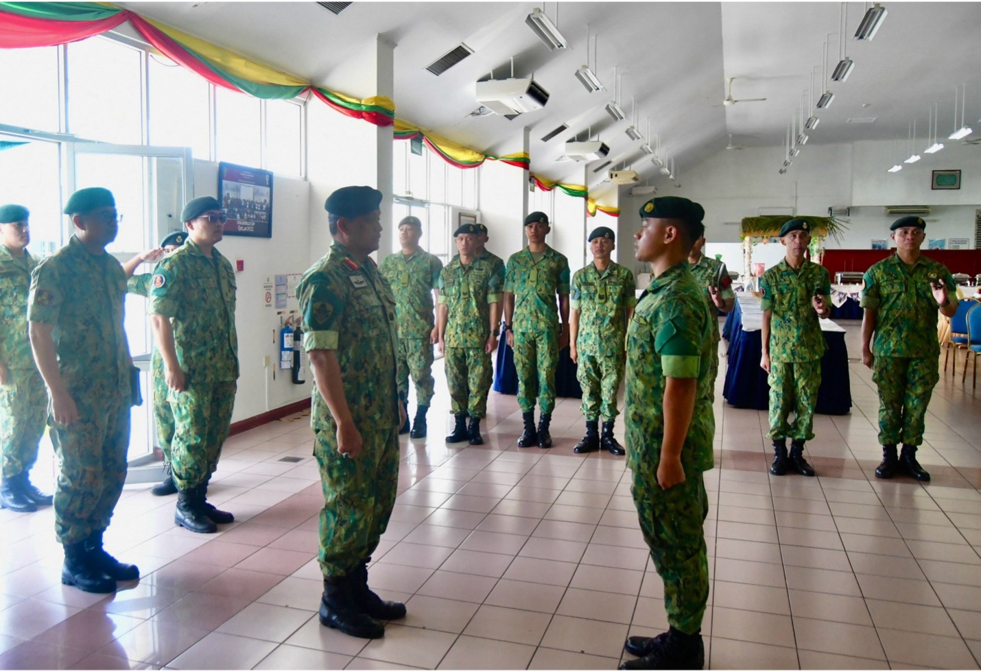 The session commenced with the recitation of Surah Al-Fatihah, followed by the recitation of the RBLF pledge. Subsequently, the Commander of RBLF delivered his remarks, in which he reminded the course participants to take immense pride in their achievements and their role within the RBLF, as well as maintaining the high standards of discipline expected of a soldier in the Royal Brunei Armed Forces. The talk concluded with a question-and-answer session, and proceeded with Hari Raya Aidilfitri celebration and a meet-and-greet session between the Commander RBLF and the course participants.