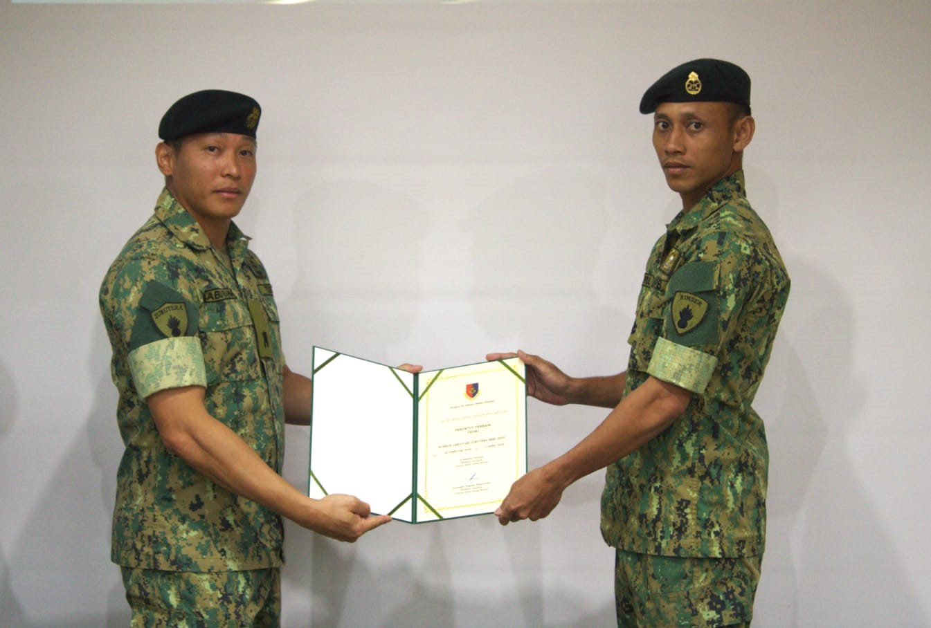 The ceremony began with the recitation of Surah Al-Fatihah followed by a course review delivered by Captain Awangku Muhd Nur'Syafiq Adha bin Pengiran Roslan, Training Officer of the Basic Engineer Wing. The highlight of the event was the presentation of certificates and individual recognition to the top-performing course participants. The Best Practical Award was presented to Corporal Mohammad Arraffie bin Noorzali from the 2Sqn Engr Reg RBLF, while Corporal Md Khairul Izzuddin bin Haji Matusin, 1Bn RBLF was awarded both the Best Theory Award and the Overall Best Award.