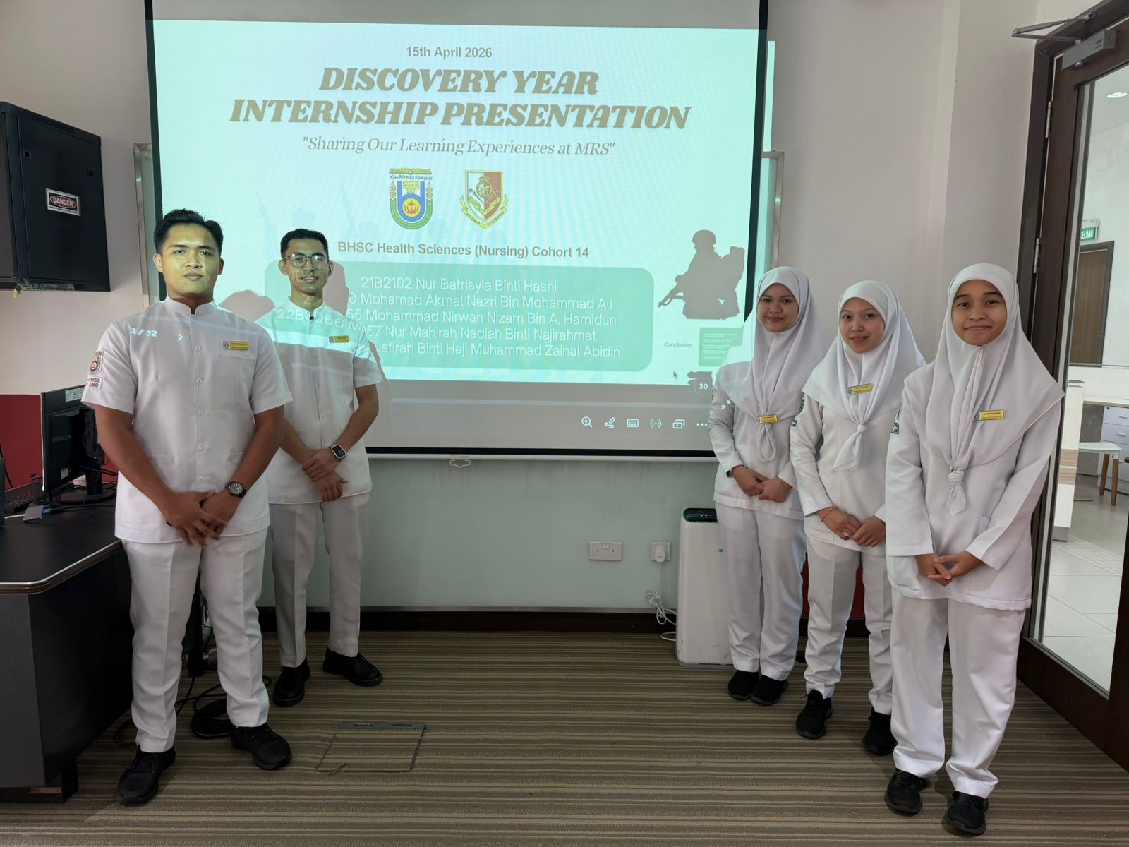 BOLKIAH GARISON, Jumaat, 17 April 2026 – Lima mahasiswa dan mahasiswi kejururawatan dari Universiti Brunei Darussalam (UBD) telah menamatkan penempatan Program Discovery Year selama tiga bulan bersama Khidmat Perubatan dan Kesihatan, Tentera Darat Diraja Brunei (TDDB) dari 12 Januari hingga 18 April 2026 bertempat di Bolkiah Garison.
