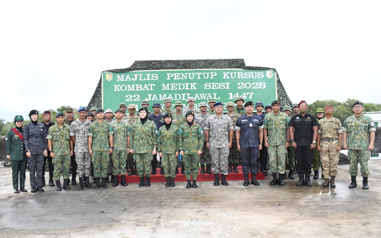 | COMBAT MEDICS READY TO SERVE | PENANJONG GARRISON, Friday, 14th November 2025 – The Medical Services, Royal Brunei Land Forces (RBLF), conducted the closing event for the Combat Medic Course (CMC) 2025 at the FIBUA Complex in Penanjong Garrison. The course, held from 8th September to 13th November 2025, was attended by a total of 20 participants, comprising two personnel from the Field Headquarters, two personnel each from the First, Second and Third Battalion, one from the Royal Guard Regiment, three from the Royal Brunei Navy (RBN), three from the Royal Brunei Air Force (RBAirF), two from the Special Forces Regiment, Royal Brunei Armed Forces (SFR RBAF), one from the Royal Brunei Police Force (RBPF) and two from the Prisons Department.