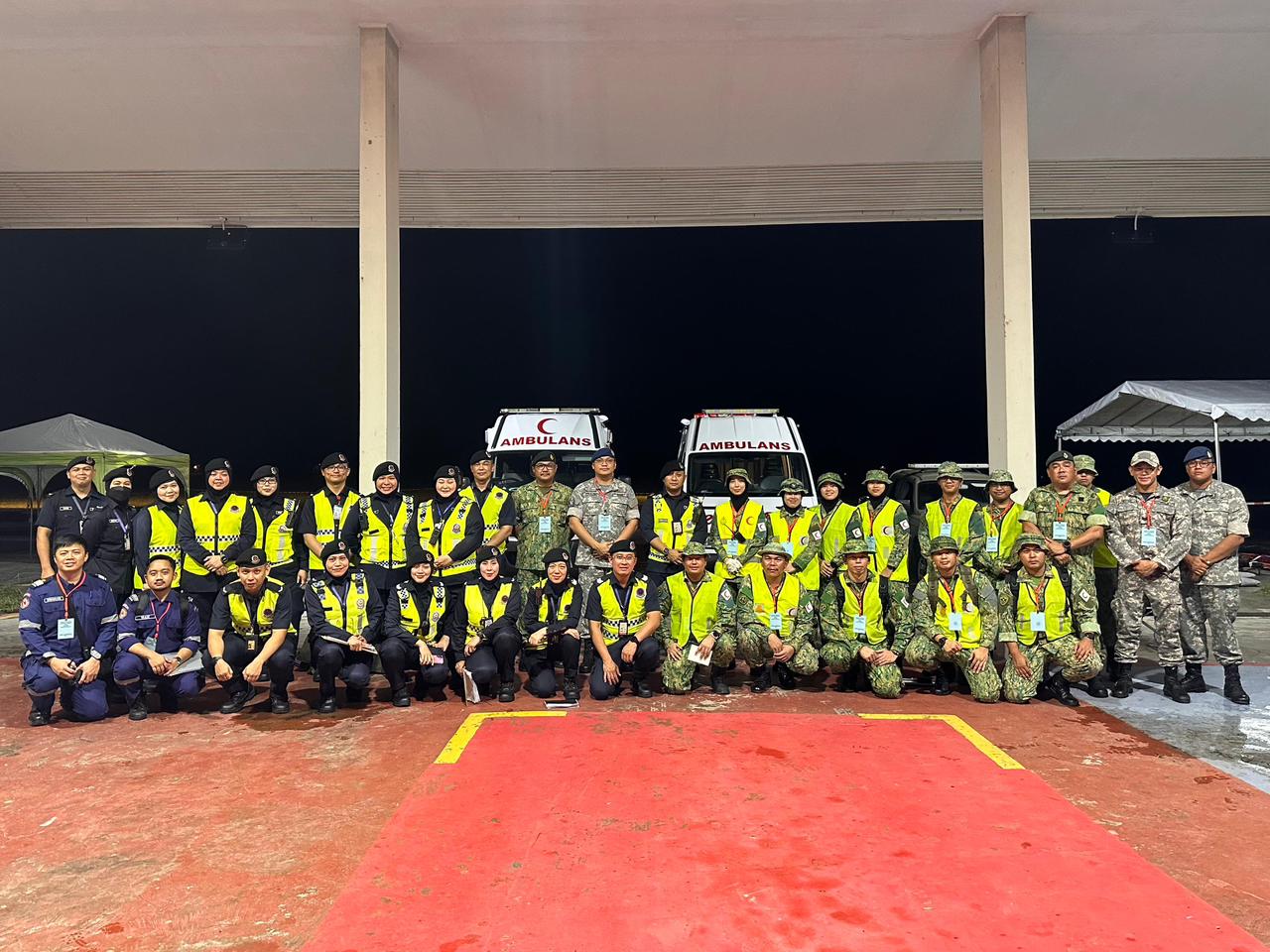 | MEDICAL SERVICES PARTICIPATED IN EXERCISE BANGAU PUTIH 2025 | BERAKAS, Thursday, 13th November 2025 – The Medical Services, Royal Brunei Land Forces (RBLF), participated in one-day Exercise BANGAU PUTIH 2025, organised by the Department of Civil Aviation, Ministry of Transport and Infocommunications, held at the Berakas International Airport. Also joining in the exercise were the Royal Brunei Air Force, Joint Force Headquarters Royal Brunei Armed Forces, the Royal Brunei Police Force, Royal Customs and Excise Department, Department of Immigration and National Registration, Ministry of Health, and the Fire and Rescue Department.