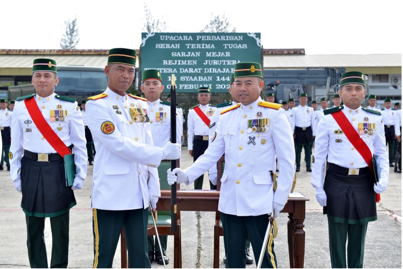 | ENGINEER REGIMENT WELCOMES NEW REGIMENT SERGEANT MAJOR | PENANJONG GARRISON, Friday, 6th February 2026 – The Engineer Regiment, Royal Brunei Land Forces (Engr Regt RBLF) held a change of command ceremony for its Regiment Sergeant Major (RSM) at the First Squadron Parade Square in Penanjong Garrison. The ceremony marked the official handover from the outgoing RSM, First Warrant Officer Abdul Rashid bin Haji Lamat, to the newly appointed RSM, First Warrant Officer Mohd Shah Ifol bin Mohammad Salleh.