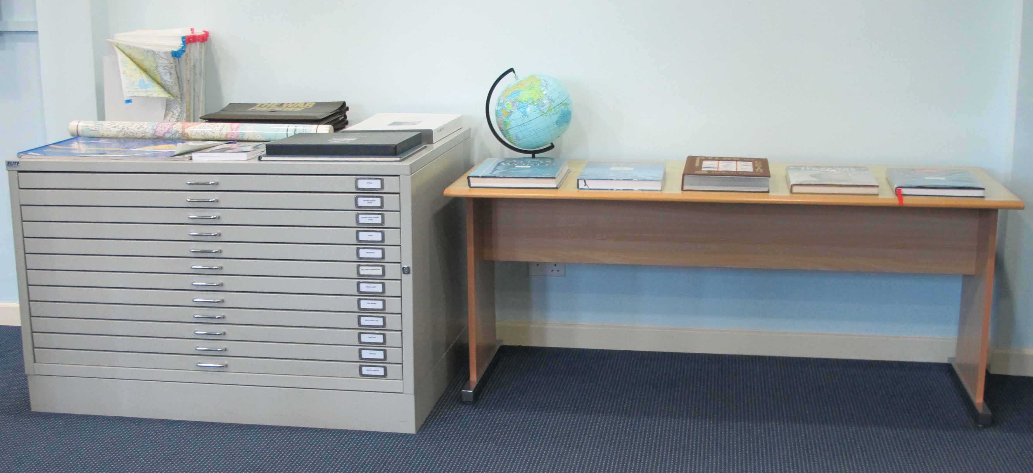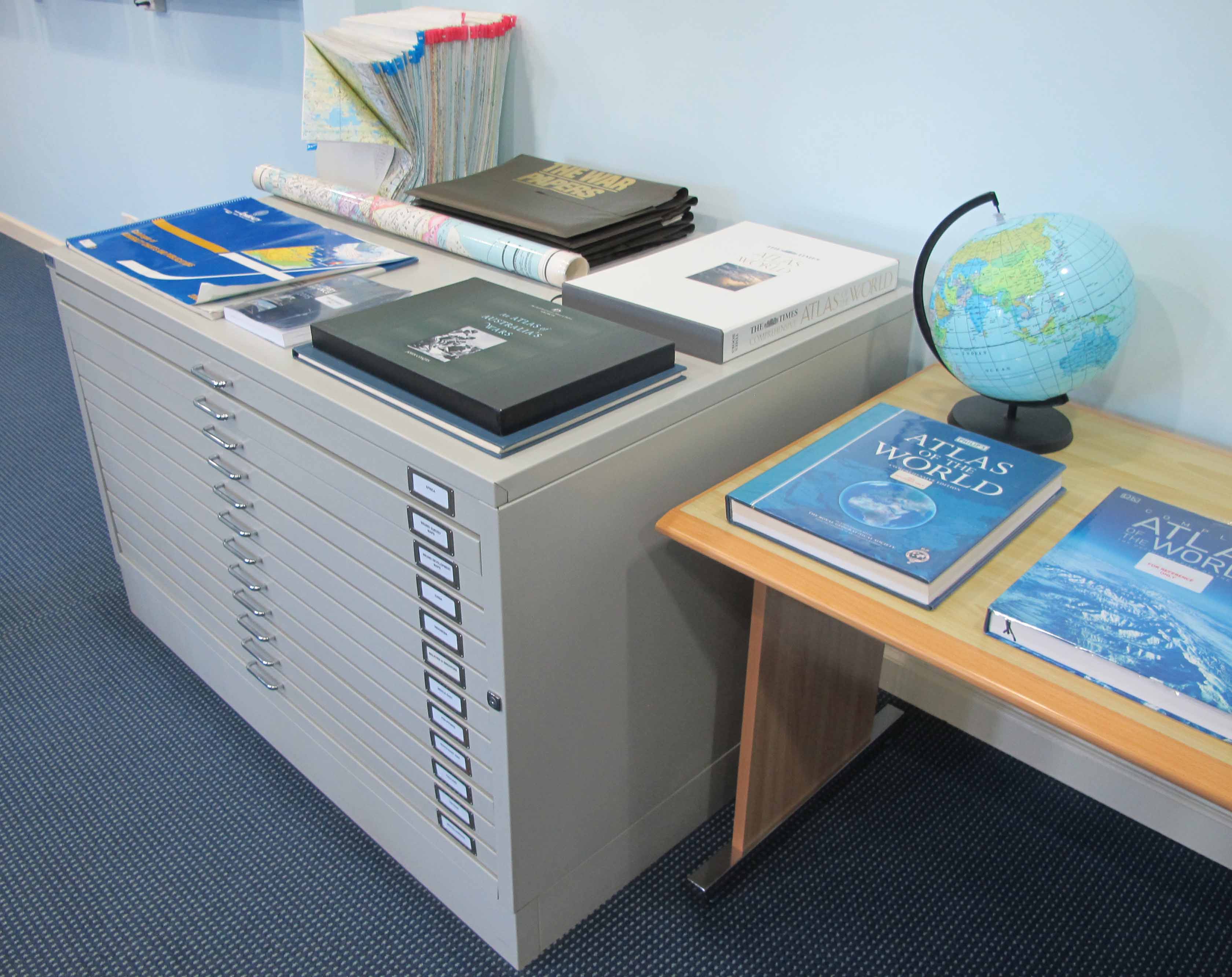 The Library currently houses over 50,000 books, 180 periodical titles, audio-visual materials and maps.